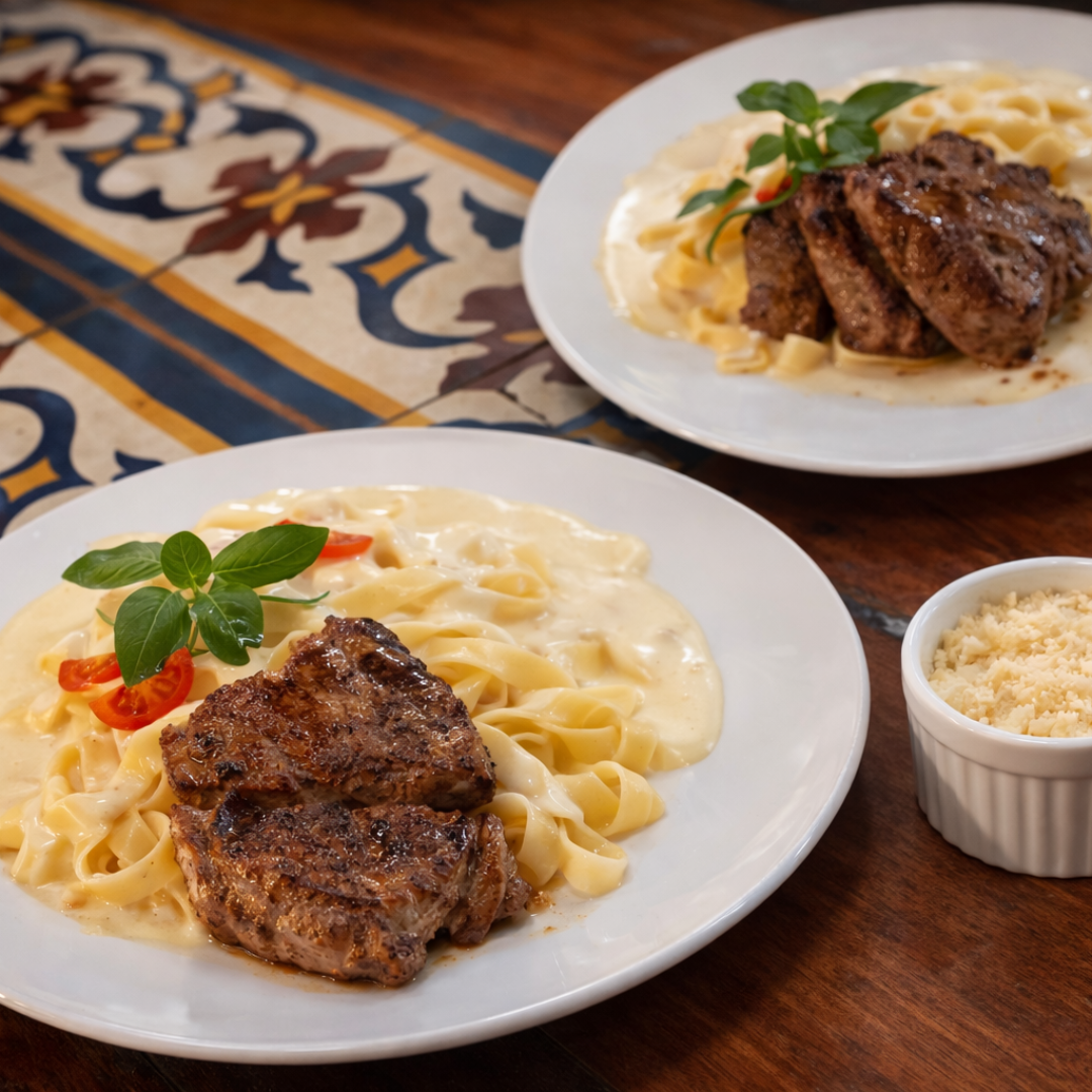As parmegianas são destaque da casa, assim como os pratos grelhados, as massas e os risotos, que trazem equilíbrio entre tradição e conforto. Para acompanhar, uma carta de bebidas completa, com chopp, cervejas, drinks e opções não alcoólicas.